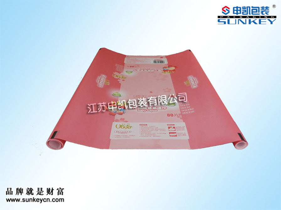說明:濕巾紙包裝卷膜材質(zhì)一般是由BOPP/CPP組成,經(jīng)過復(fù)合-熟化-分切多層工藝。