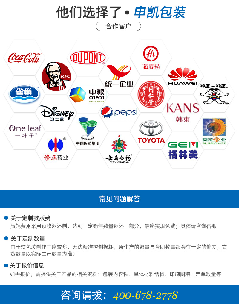 只要用了我們的包裝,不管是包裝膜的問題還是包裝機的問題,都是我們的問題!只要有質量問題,馬上召回,不管有多遠!